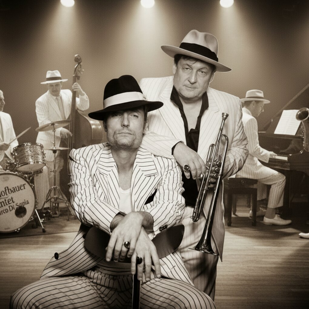 Der aus Rom stammende Sänger Marco Di Sapia, Ensemblemitglied der Volksoper Wien, und das Joe Hofbauer Quintett präsentieren bei ihrem gemeinsamen Konzertabend „Buonasera Signorina“ eine Auswahl der legendärsten Songs des italienischen 50er Jahre Sängers Fred Buscaglione. Mit seinem charmanten, leicht rebellischen Stil wurde Fred Buscaglione in den 1950er Jahren in Italien sehr bekannt. Seine Musik kombinierte Elemente des Jazz, Swing, Blues und zeichnen sich durch ihre lebendige Instrumentierung aus, die oft von Bläsern und jazzigen Arrangements begleitet wird. Da er sich über die Nordamerikanische Italo-Gangsterwelt lustig macht, sind seine Texte humorvoll, mit einem Augenzwinkern und einer gehörigen Portion Selbstironie versehen. Die Themen seiner Lieder handeln oft von Liebe und Verlust, aber auch von der Lebenslust und dem hedonistischen Lebensstil, den er selbst verkörperte.